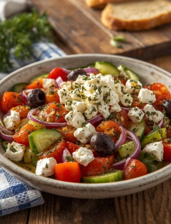 Introduction The Greek Salad with Feta, also known as Horiatiki Salad, is a refreshing Mediterranean dish that embodies the flavors …