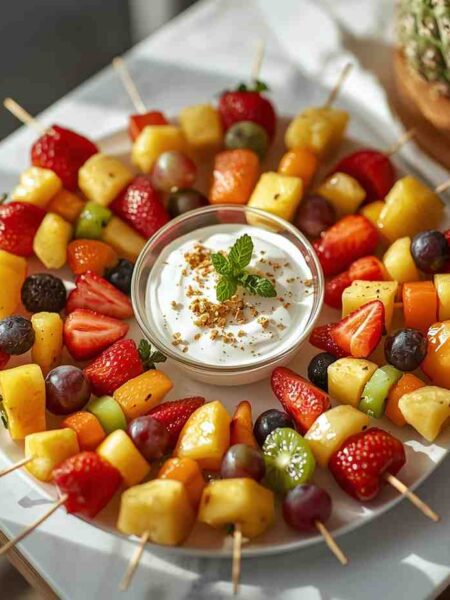 Fresh Fruit Skewers with Honey Yogurt Dip