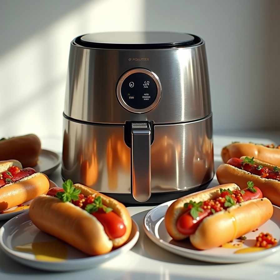 - Air Fry Hot Dogs: Place hot dogs in a single layer in the air fryer basket. Cook at 380°F (193°C) for 6–8 minutes, turning halfway, until heated through and lightly crisped.