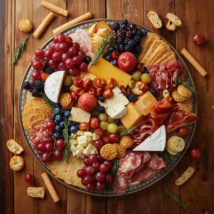 - Color balance: Alternate colors — bright fruits next to neutral cheeses look beautiful.