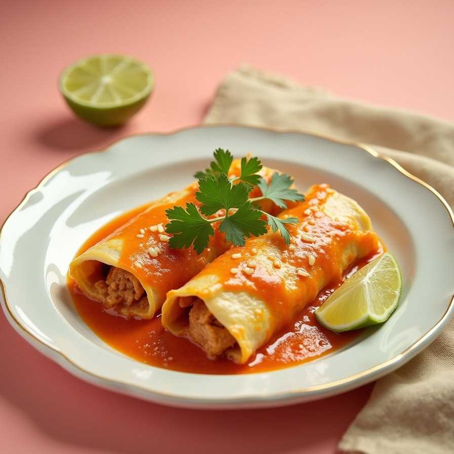Prepare a seasoned chicken filling, roll it inside tortillas, cover with enchilada sauce and cheese, then bake until bubbly and golden.