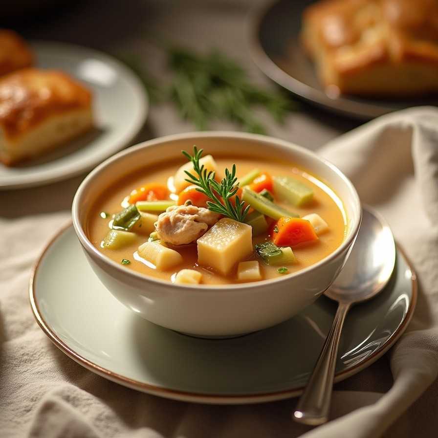 Sauté vegetables, create a light roux, add broth and milk, then simmer with chicken and potatoes until tender and creamy.