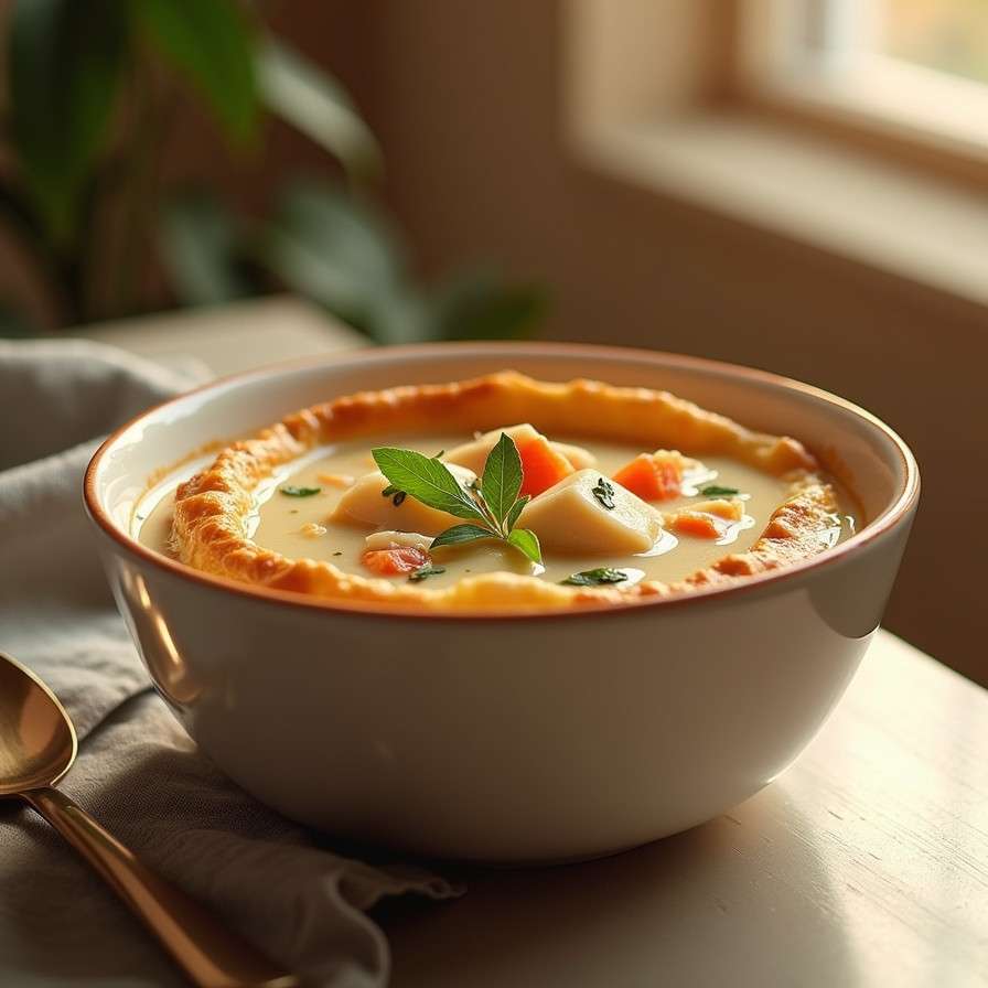 Chicken Pot Pie Soup is a warm, comforting dish that captures all the cozy flavors of a classic chicken pot pie in a rich, creamy soup form. It features tender chicken, hearty vegetables, and a velvety broth seasoned with herbs that evoke home-style cooking.