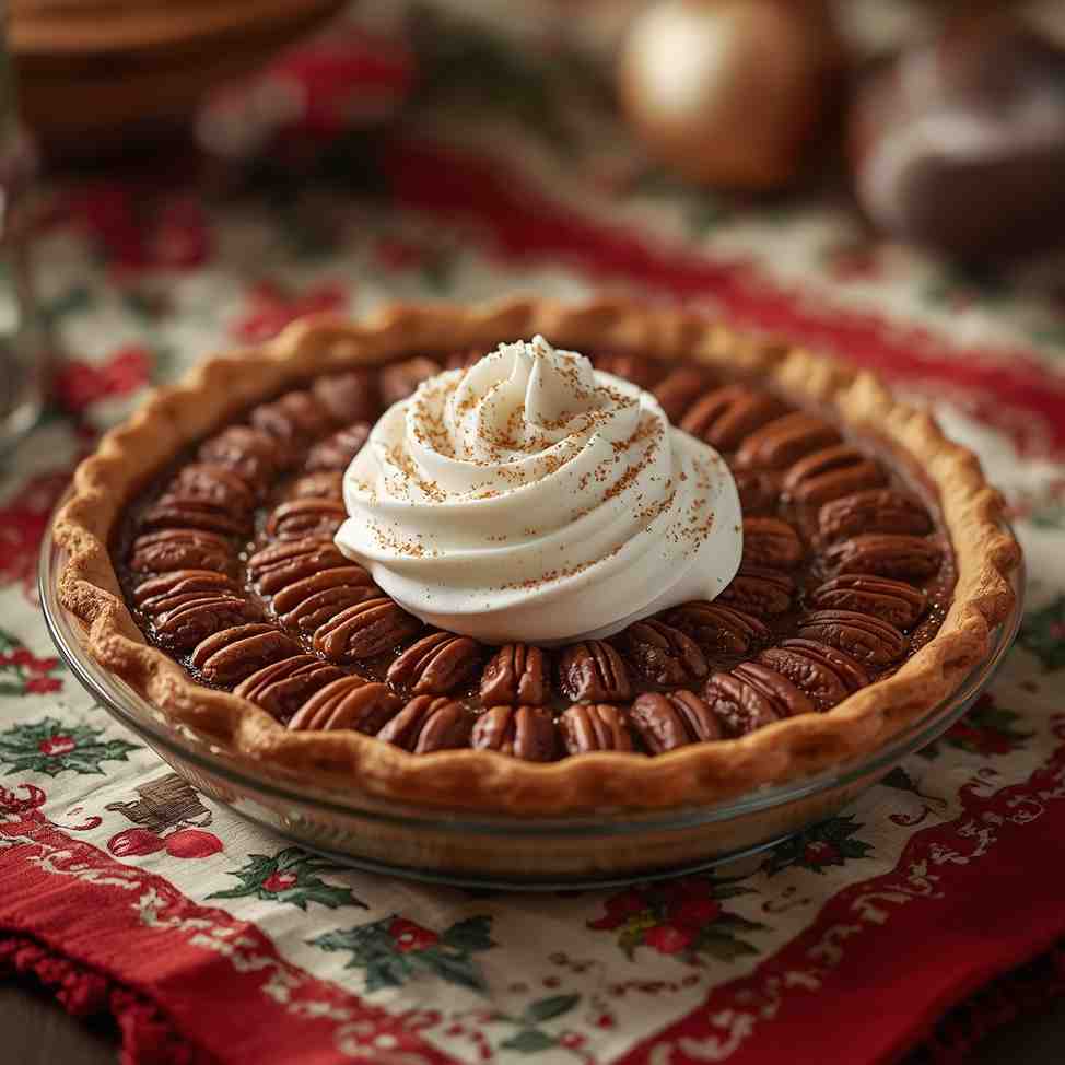 Christmas Pecan Pie with Whipped Cream Topping