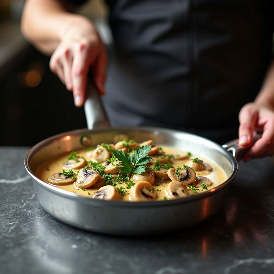 Step 3: Cook the Mushrooms : In the same skillet, melt butter. Add mushrooms and cook until browned and moisture evaporates.
