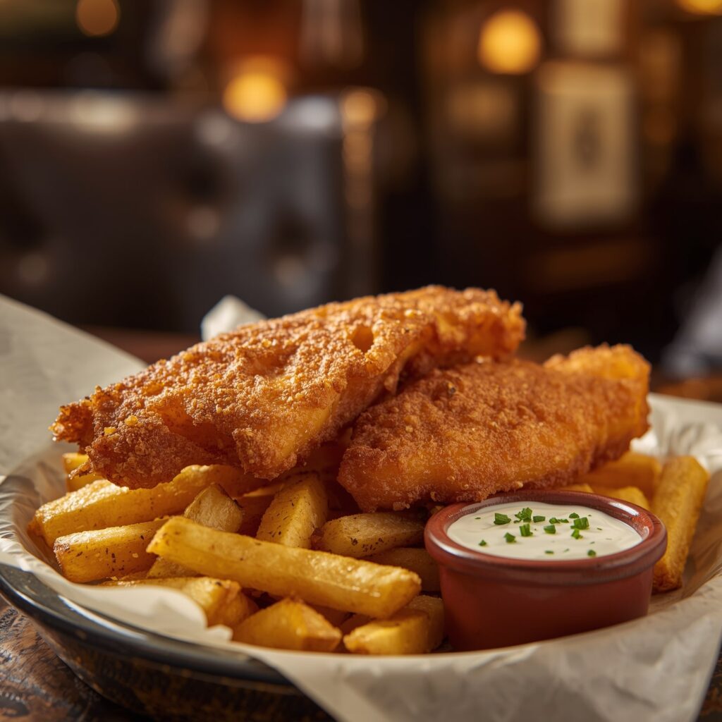 What makes this dish truly special is the light and airy beer batter that creates a crisp shell around tender, flaky white fish. Served with crispy chips and tangy tartar sauce, it’s the kind of meal that feels indulgent yet comforting—perfect for weekends, family dinners, or even a casual gathering with friends.
