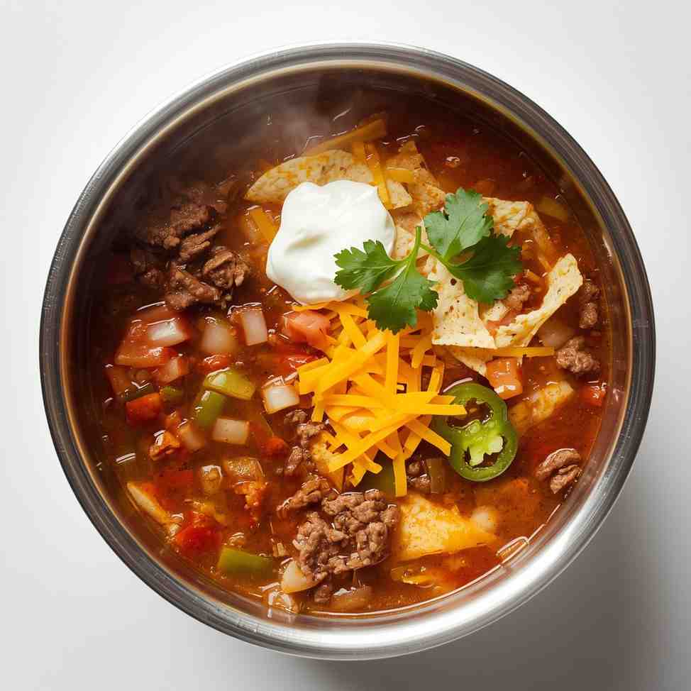 - Optional toppings: shredded cheese, sour cream, chopped green onions, tortilla chips