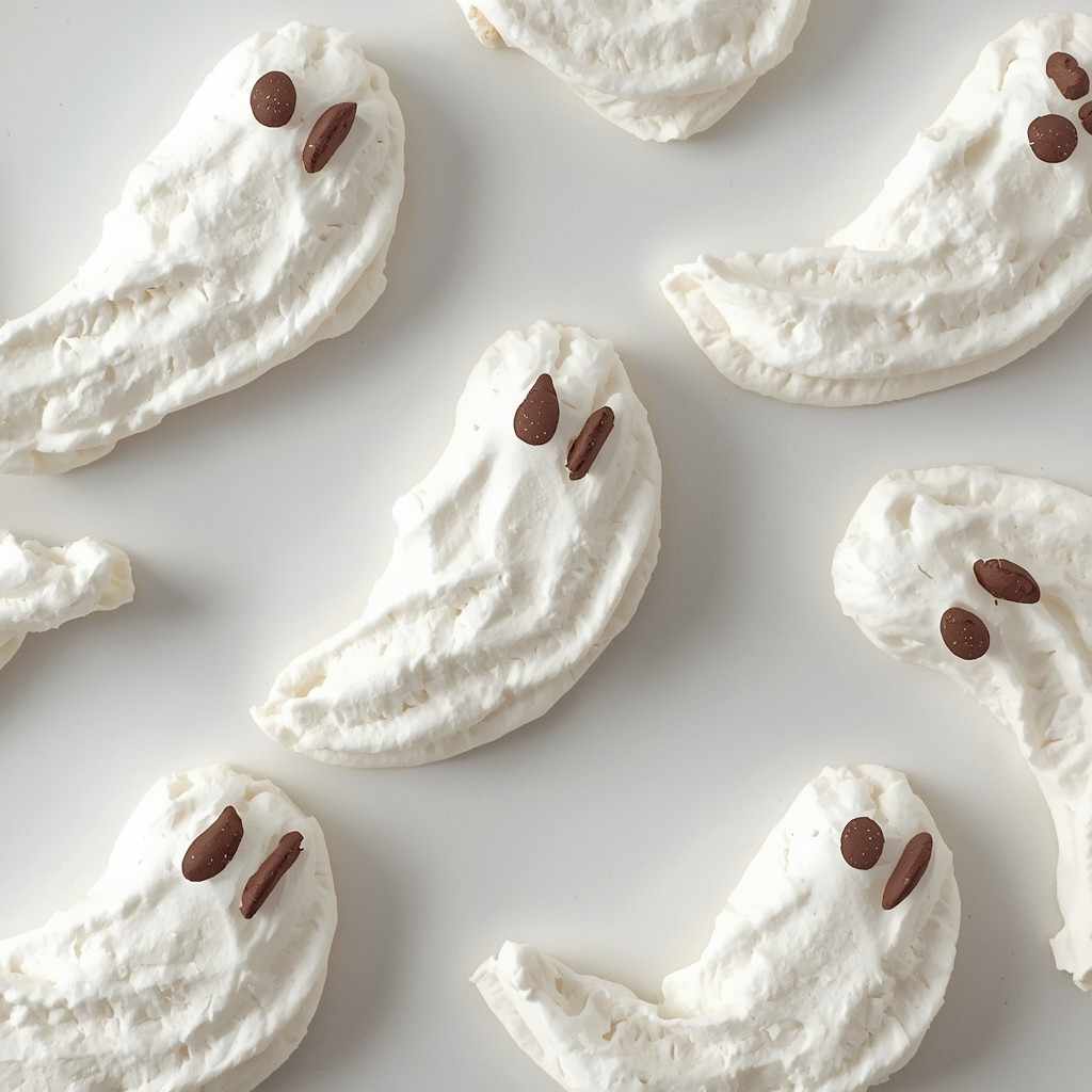 Pipe onto lollipop sticks for cute ghost meringue pops — great for kids’ parties! - Chocolate-Dipped Ghosts: