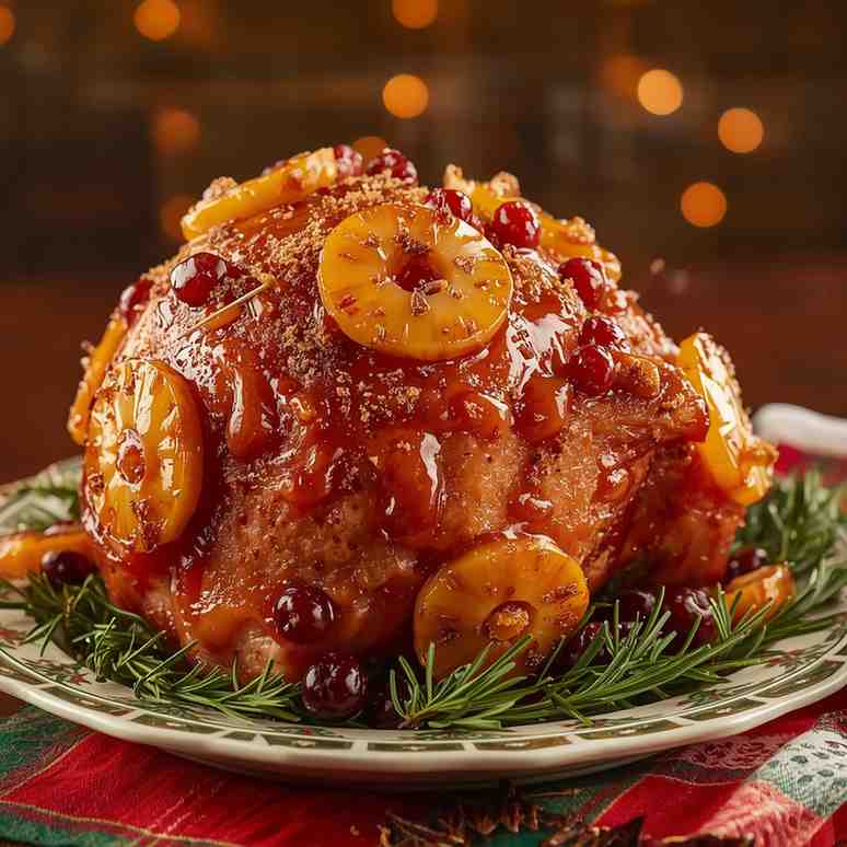 I love this recipe because it captures everything magical about the holidays — comfort, indulgence, and family togetherness. The combination of honey and brown sugar creates a glossy, golden crust, while the natural saltiness of the ham balances the sweetness perfectly. The pineapple rings not only infuse flavor but also give the dish a nostalgic, old-fashioned charm reminiscent of classic Christmas dinners.