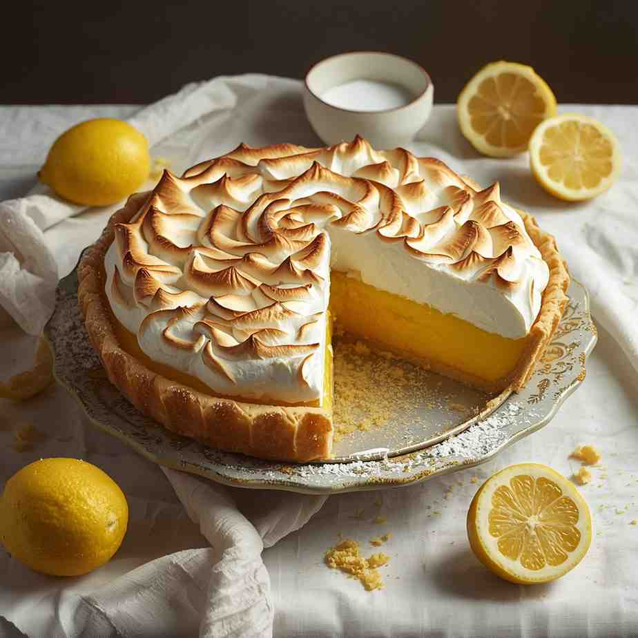 Lemon Meringue Pie is a classic dessert that combines a crisp, buttery crust with a tangy, velvety lemon custard topped with fluffy, golden meringue. This pie is a celebration of contrasting textures and flavors—the smooth tartness of the lemon filling, the light sweetness of the meringue, and the crisp richness of the pastry. It has been a beloved dessert for generations, often appearing at family gatherings, holidays, and special occasions.