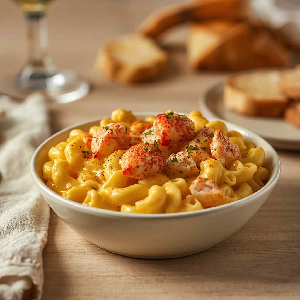 Serve Lobster Mac and Cheese hot, straight from the oven. It pairs beautifully with garlic bread, a crisp green salad, roasted vegetables, or a glass of white wine such as Chardonnay. For a more formal meal, serve it in individual ramekins. For comfort-style dining, serve it family-style in a large casserole dish.