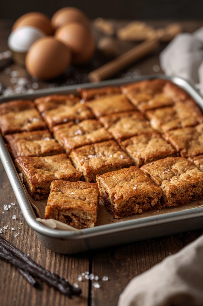 Step 6: Bake : Bake for 30–35 minutes, until edges are set but the center is slightly soft. A toothpick should come out with moist crumbs, not dry.