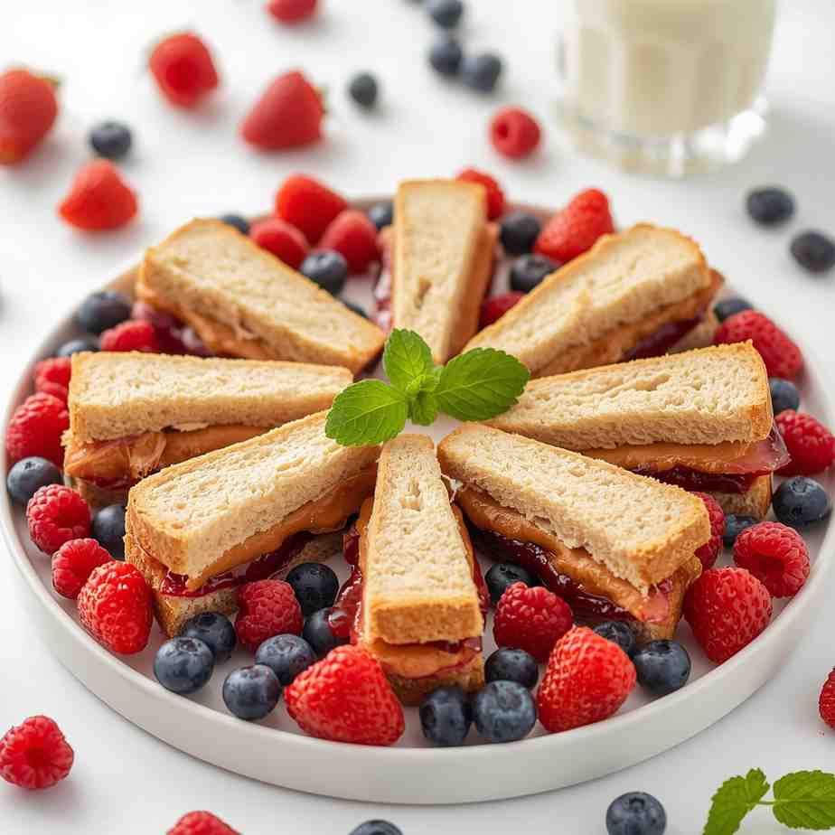 Peanut Butter and Jelly Sandwiches with Fresh Berries