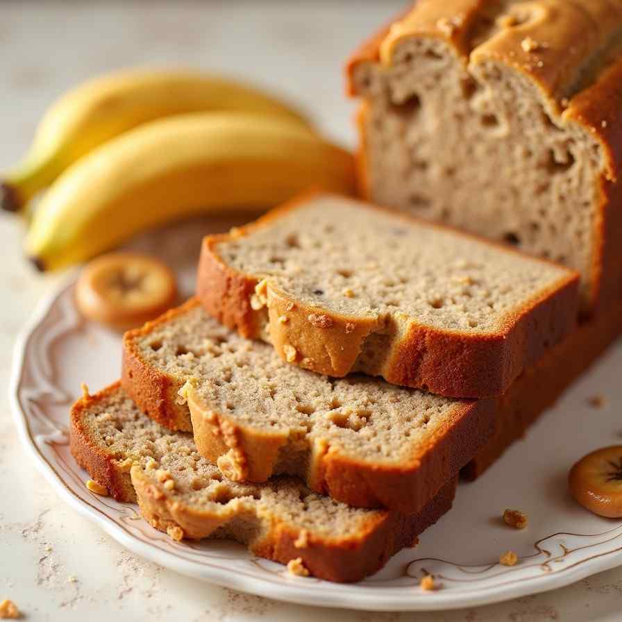 Mashed bananas are combined with peanut butter, butter, eggs, and sugar, then folded into dry ingredients. The batter is poured into a loaf pan and baked until golden brown, resulting in a moist and flavorful bread with a tender crumb.