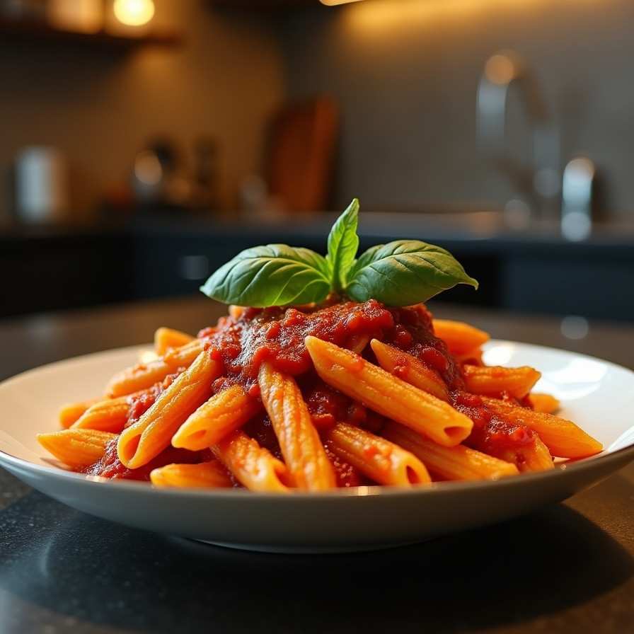 Cook the penne until al dente, prepare a spicy tomato sauce with garlic and chili flakes, then toss everything together until the pasta is well coated and flavorful.