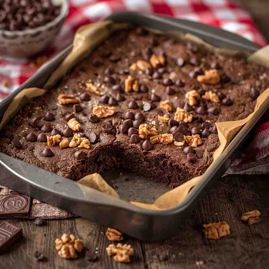 This recipe delivers that classic homemade brownie goodness with an elevated twist. The chocolate chips add gooey richness, while the walnuts lend balance and a nutty depth that perfectly complements the chocolate. It’s a nostalgic yet timeless dessert — one that never goes out of style.