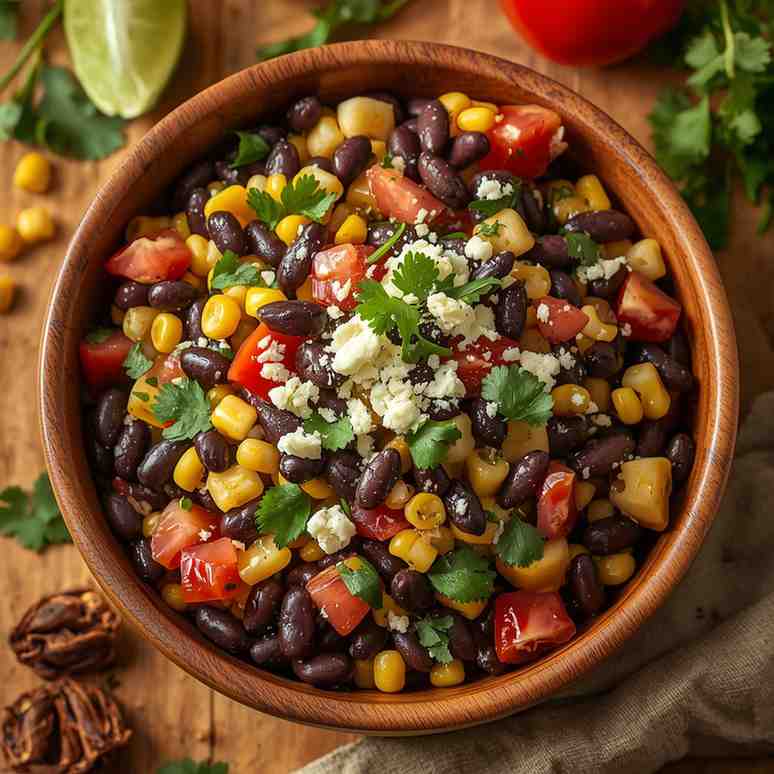 Include corn, black beans, lime, jalapeños, and cilantro.