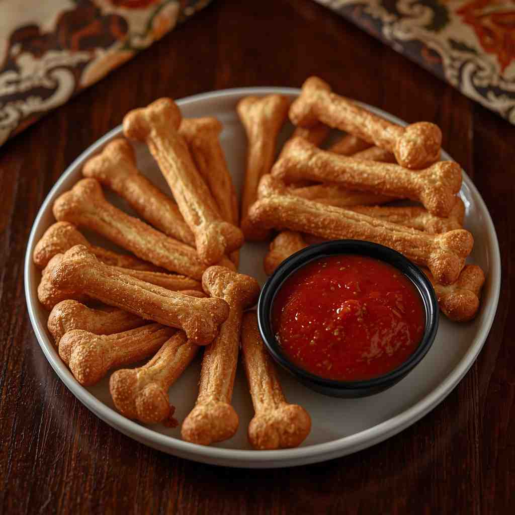 If you’re looking for a Halloween party snack that’s creepy, fun, and irresistibly delicious, these Skeleton Bone Breadsticks with Marinara Dip are the ultimate treat! Shaped like bones and baked until golden, these fluffy breadsticks have the perfect balance of soft chewiness and crisp edges. The warm, buttery, garlicky aroma fills the air while they bake, and when dipped into the rich, tangy marinara sauce — it’s pure comfort food with a spooky twist.