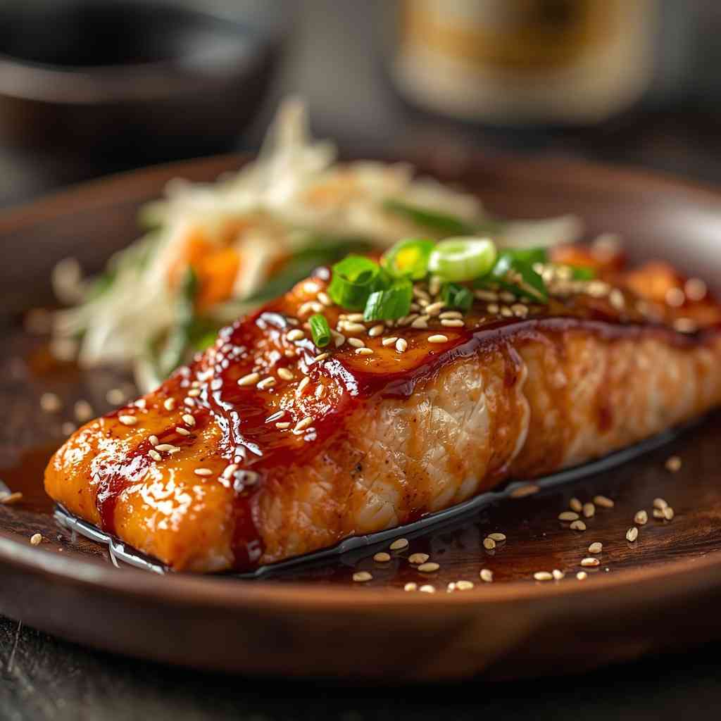 Step 5: Serve : Plate salmon and drizzle extra teriyaki glaze on top. Garnish with sesame seeds and chopped green onions. Serve with steamed rice, quinoa, or sautéed vegetables.